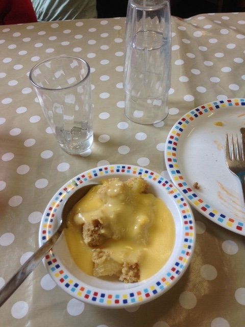 At the stroke of midday we were taken into the hall and treated to a school dinner. After having our fingernails inspected for any muck we were given home made beef burgers, chips n beans. I had of course been dreaming of custard. A bowl of macaroons at Laduree in Paris would be alright and everything but as nothing compared with the apple crumble and creme anglaise and Netherthong Primary.
